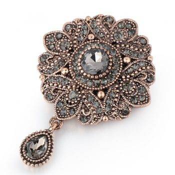 Women Elegant Rhinestone Opal Rose Flower Brooches
