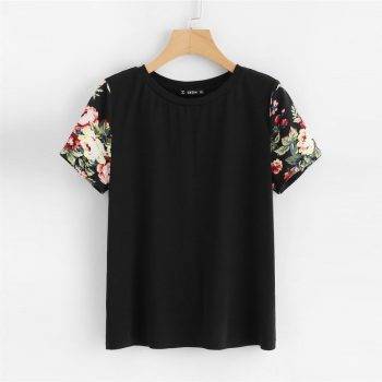 Women T-Shirt Hot Drilling Double Print Multiple Floral Design Plus Size M-5XL