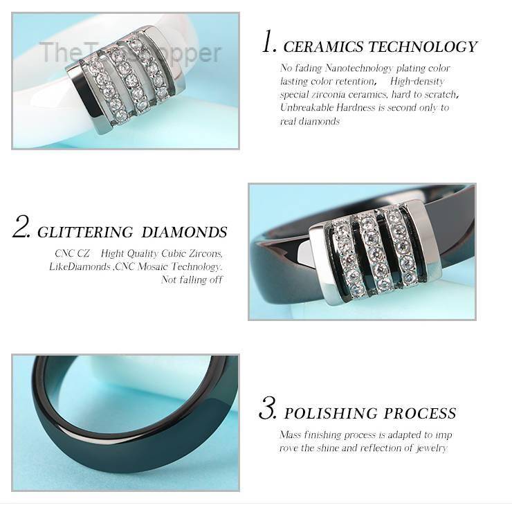 Designer High-Quality Black White Unique Women Rings Zirconia Ceramic Ring For Women