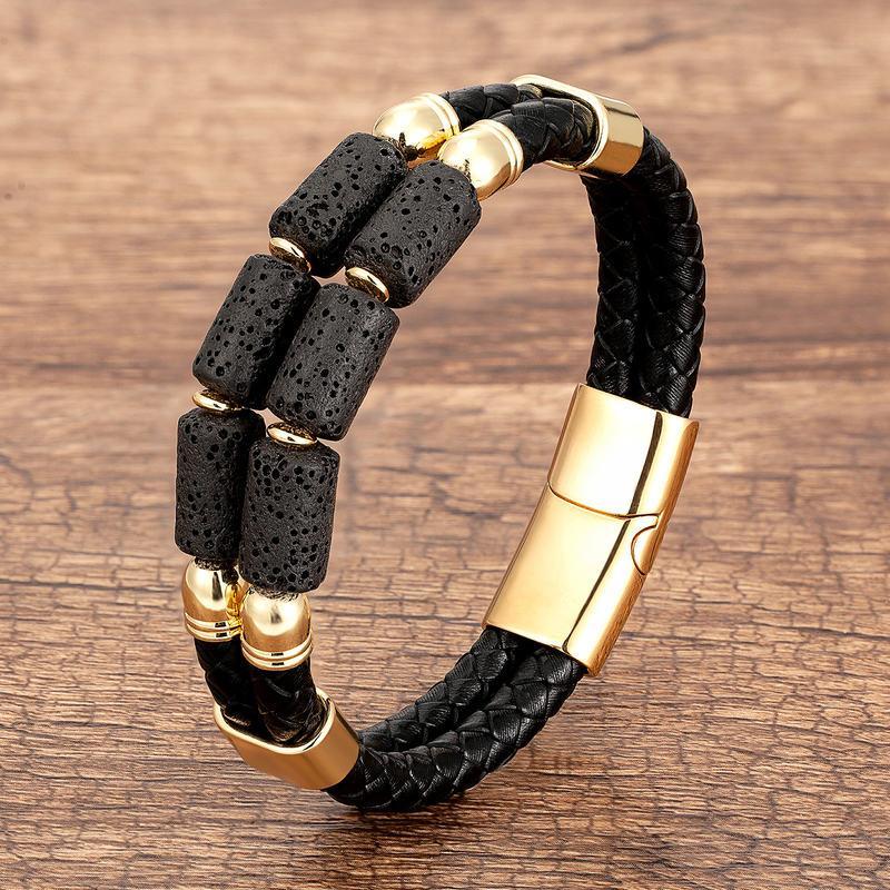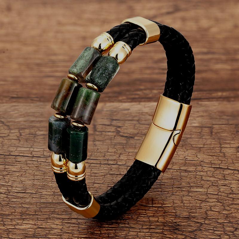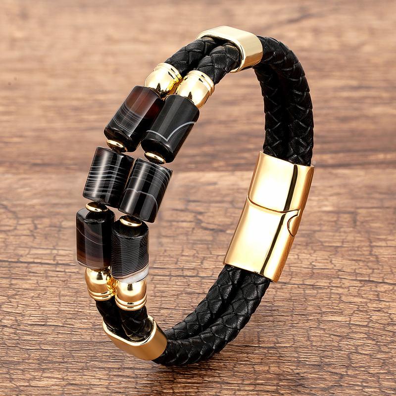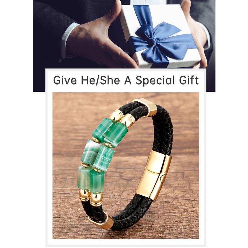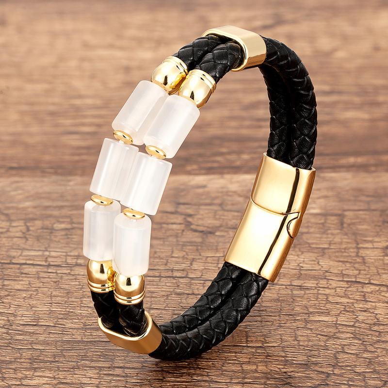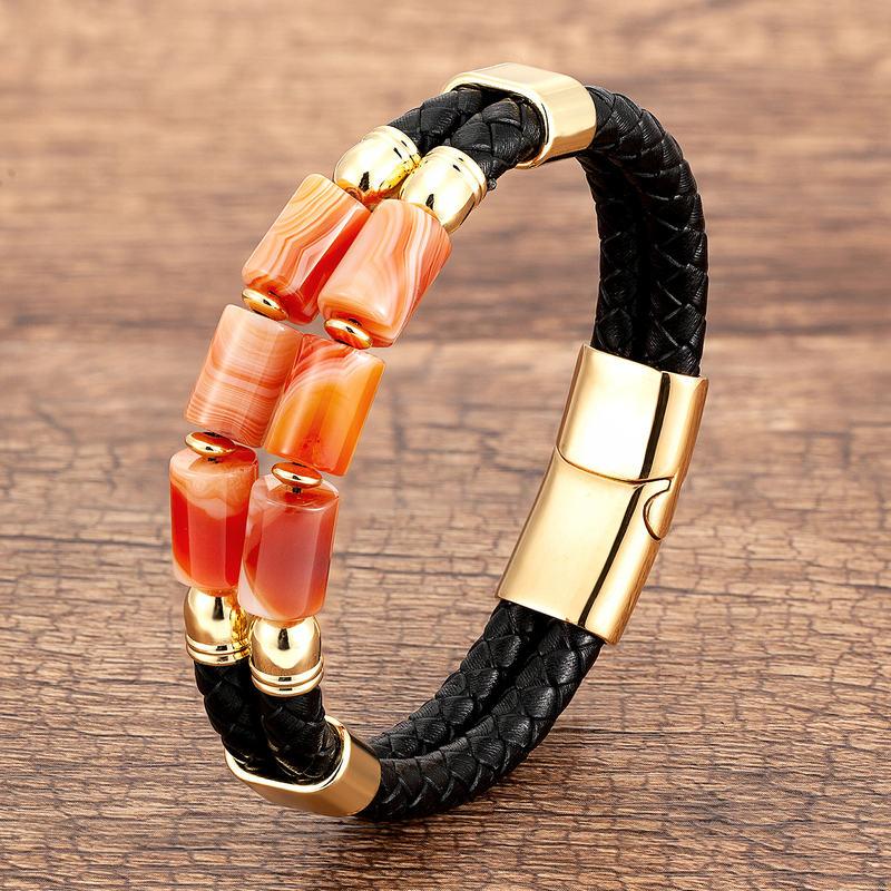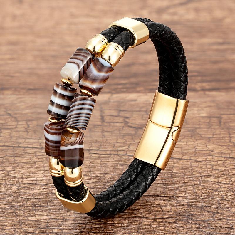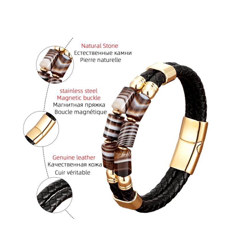 Genuine Leather Natural Stone Bracelets Luxury Bangles Jewelry