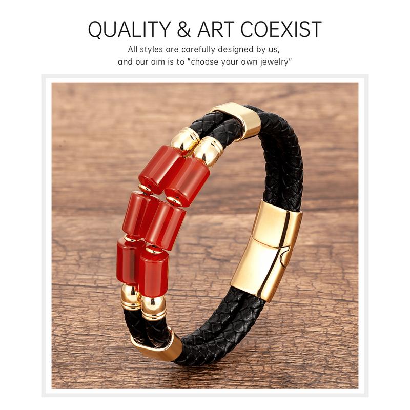 • The multilayer bangle design of genuine leather strap crafted with unique design, beautiful natural stone, neat golden clasp, and unique style make it a must-have bracelet jewelry collection.