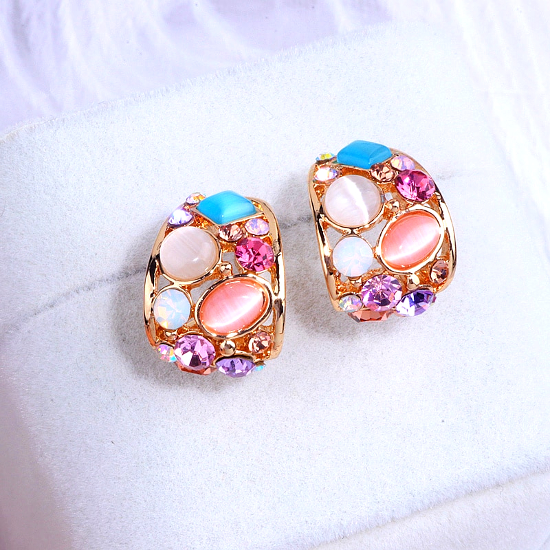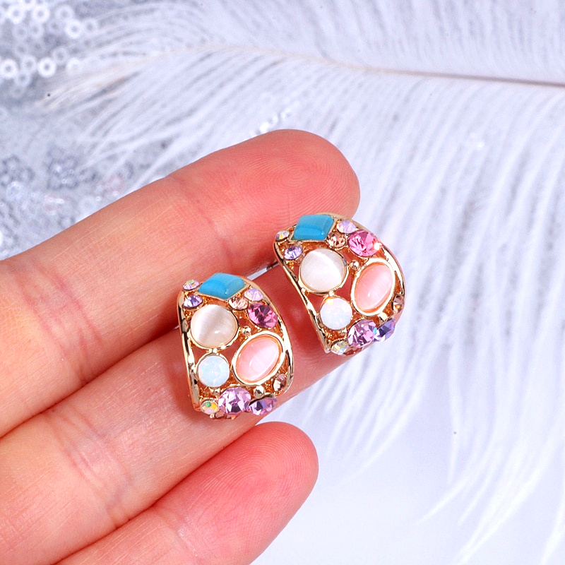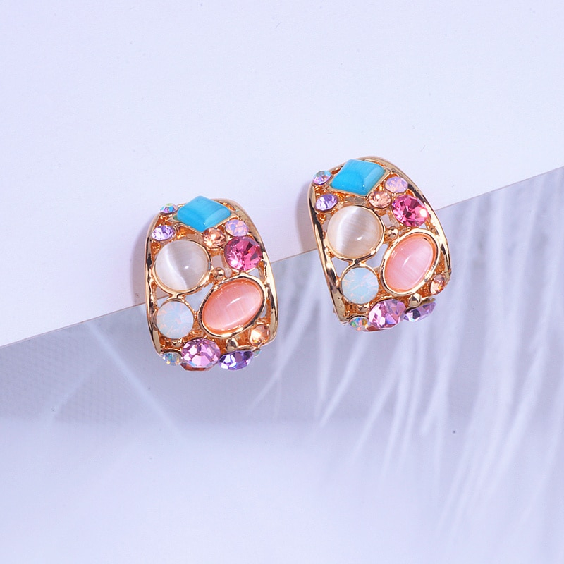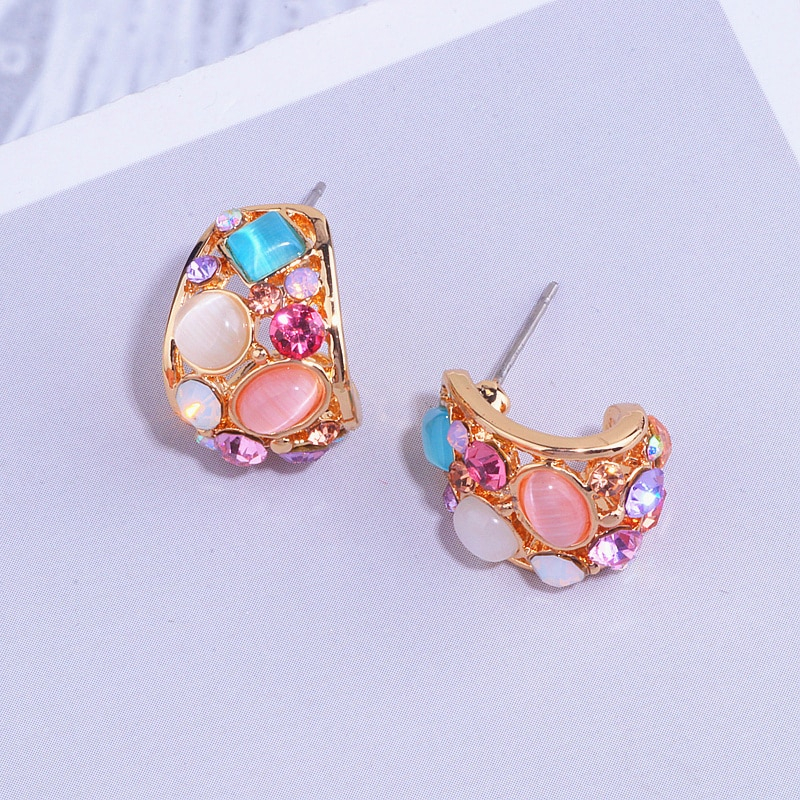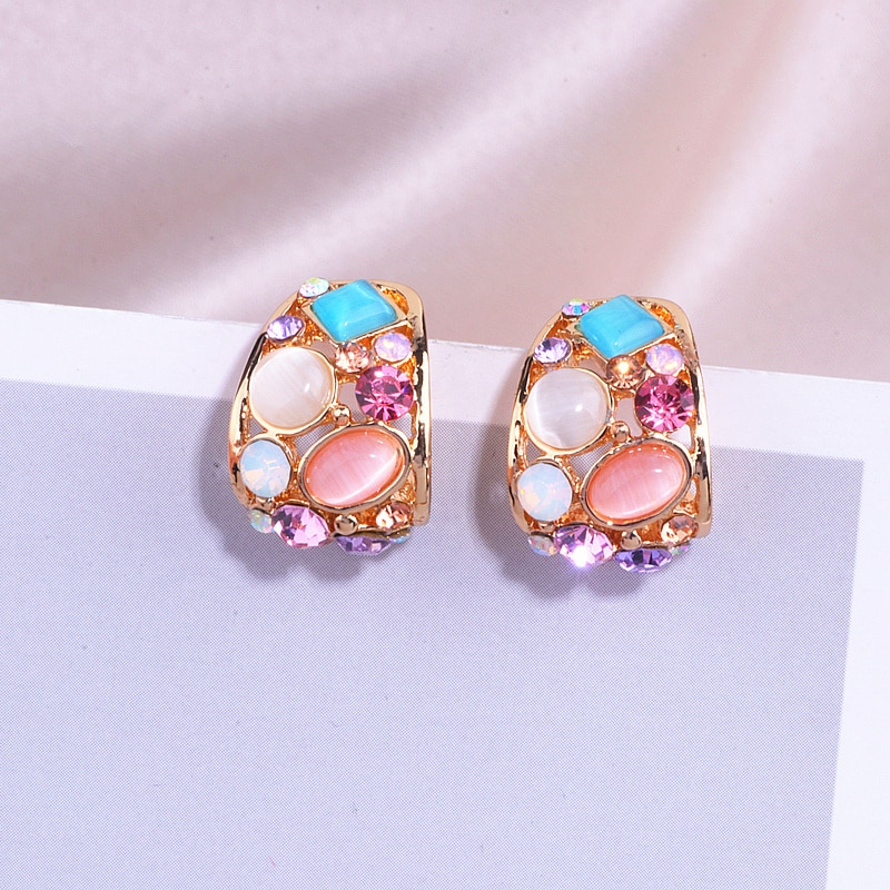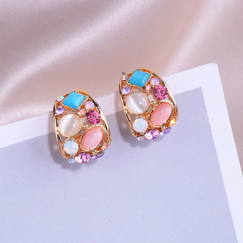 Korean Opal Stud Earrings Colorful Crystal Stud Earrings For Women