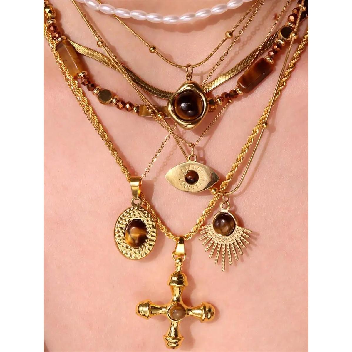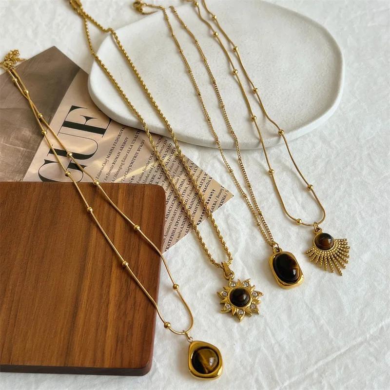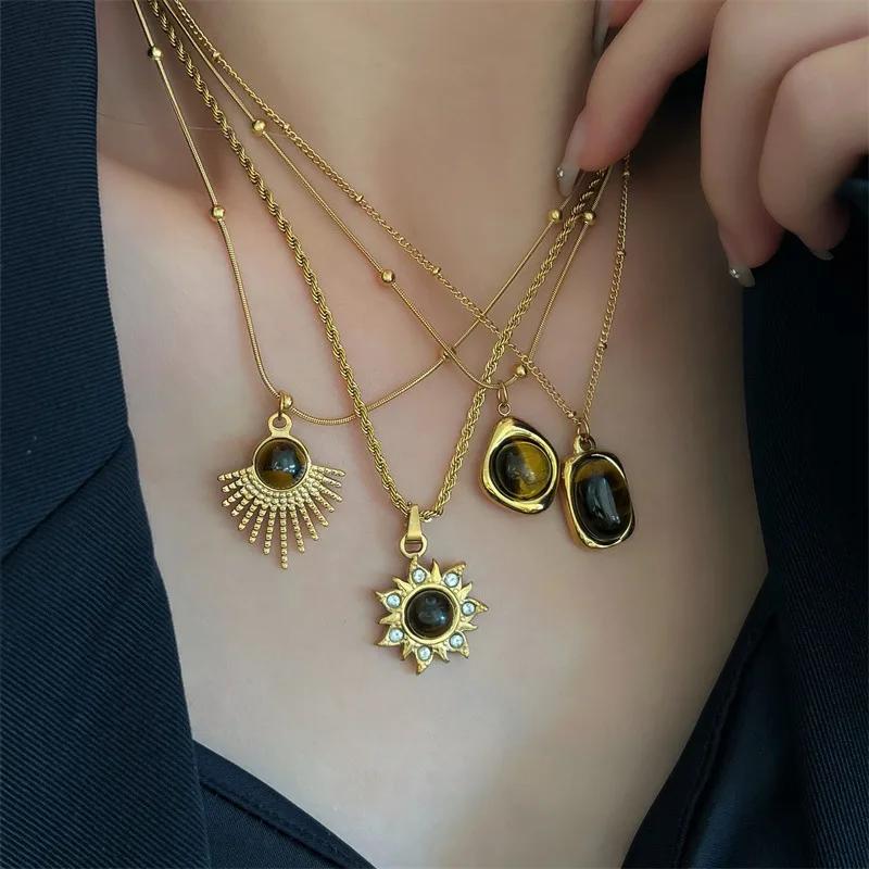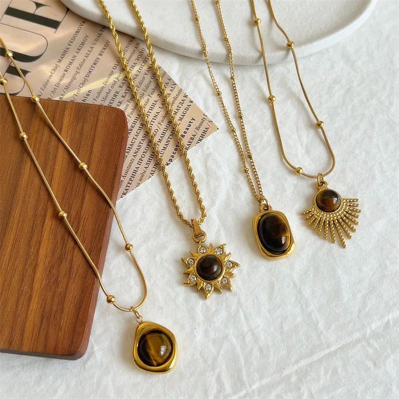 A beautiful gold charm, natural stone pendant, and titanium steel necklace enhance your outfit at parties and other occasions due to its fashionable design. Add to your jewelry collection to match your daily outfits and enhance your image.