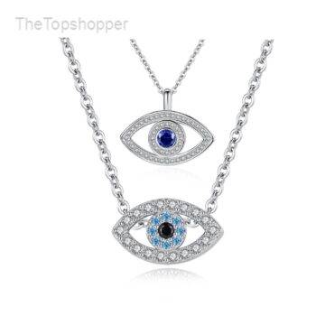 925 Sterling Silver Necklace Luck Turkey Blue Evil Eye Blue Rhinestone Eye Choker Necklace For Women
