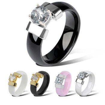 Women Stylish 6mm Ceramic Rings With Cubic Zirconia