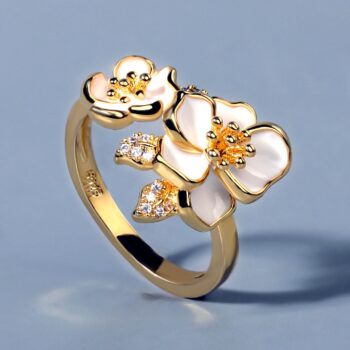 925 Sterling Silver Handmade Flower Cherry Blossom Rings For Women