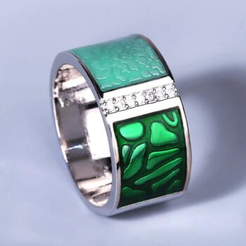 925 Sterling Silver Green Handmade Enamel Zircon Geometric Rings For Women