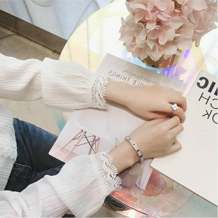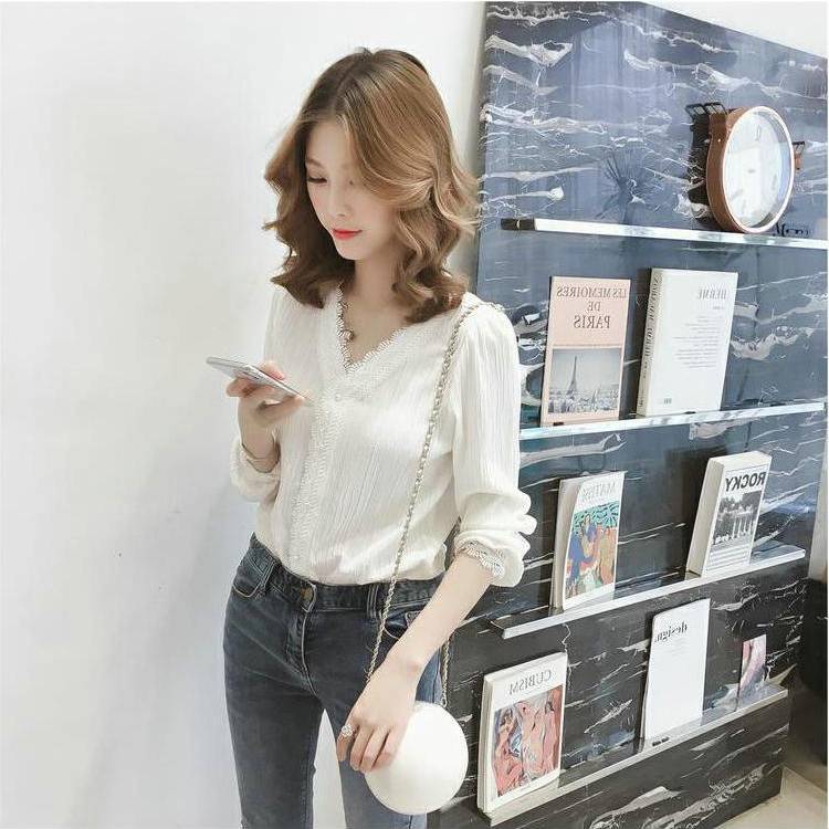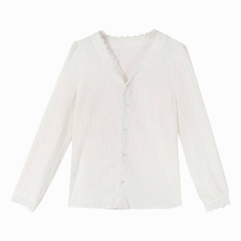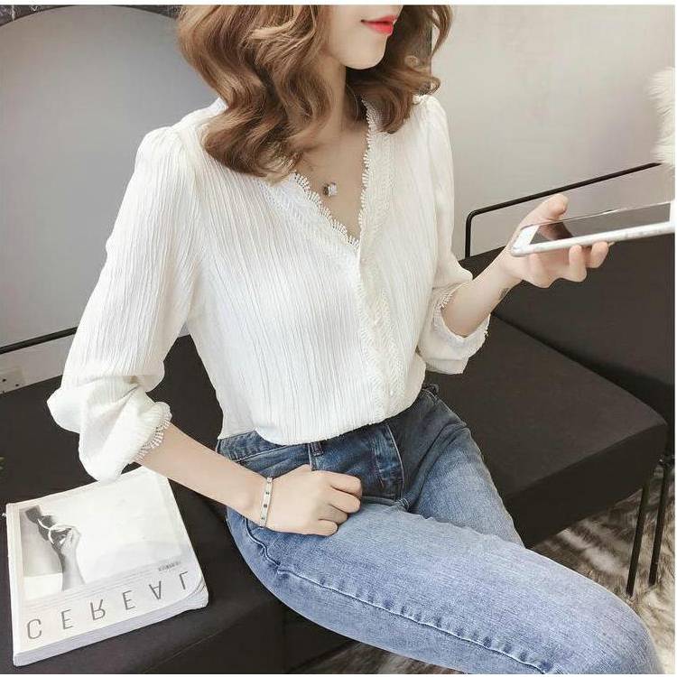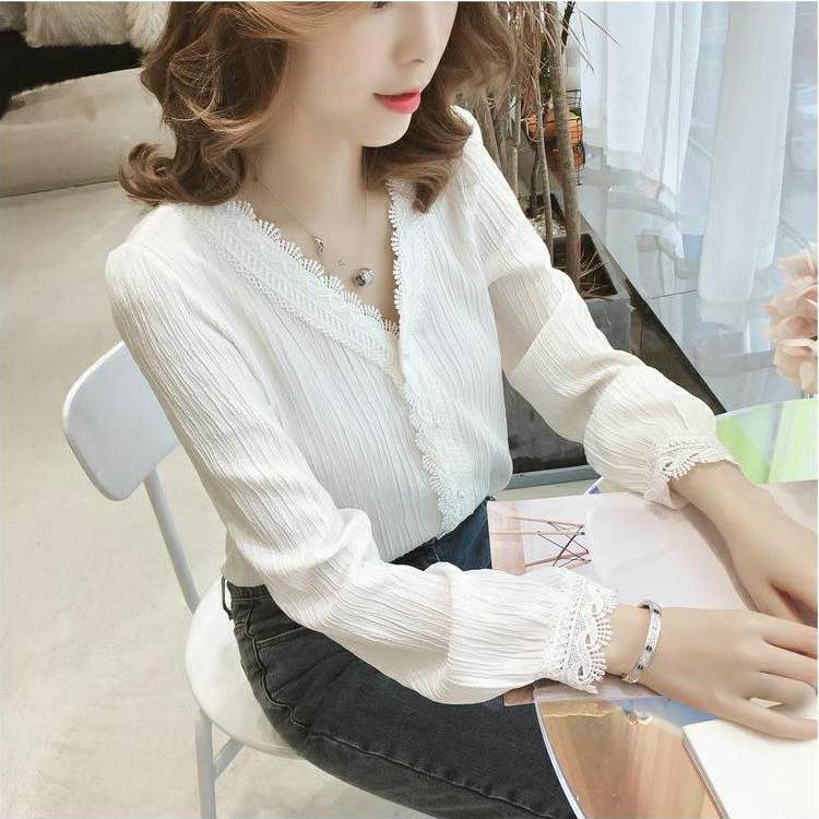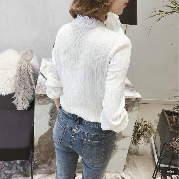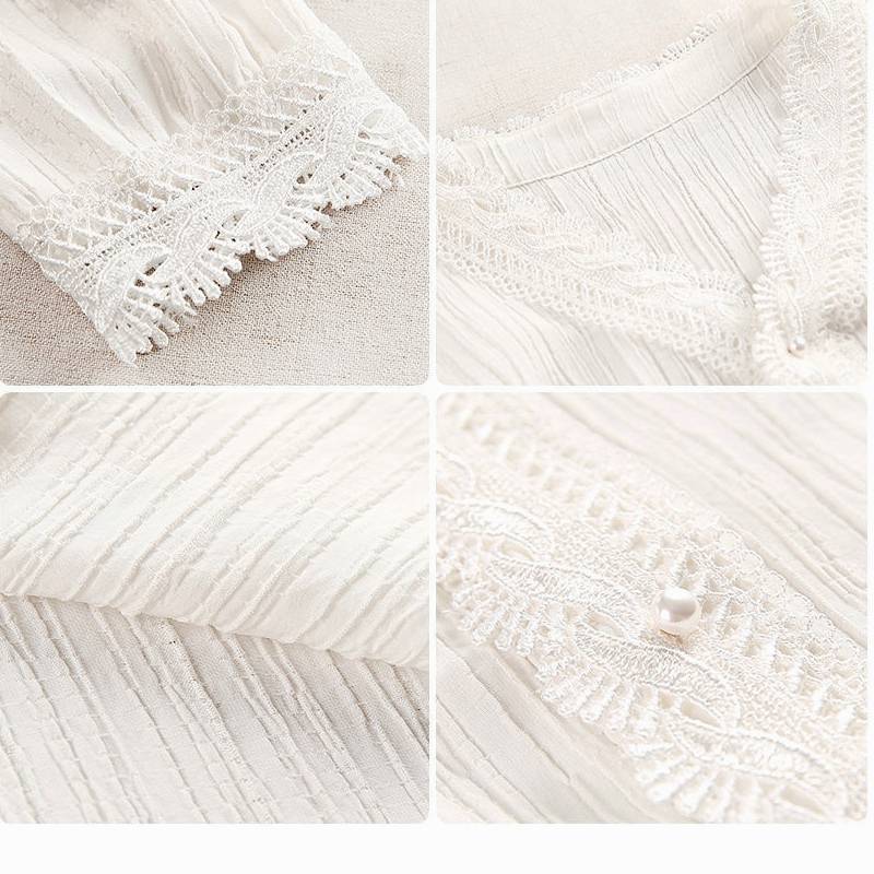 Women Blouse White Lace Chiffon Shirt